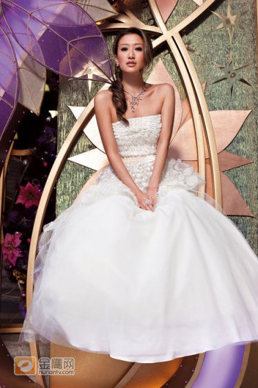 穿白色深V露背裙走秀 羡慕汪明荃结婚(图)