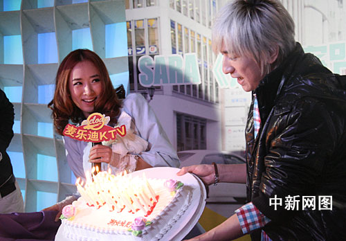后弦献上自创大礼——爱心蜡烛组成SARA字样的蛋糕。