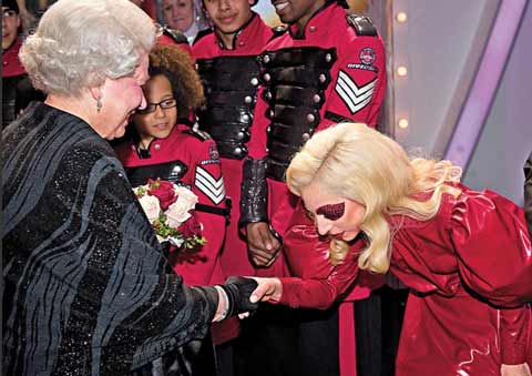 今年有份参与此御前演出的人气歌手包括美国青春女星 Miley Cyrus、加拿大歌手 Michael Buble及于今年 4月于才艺节目《英国达人》( Britain's Got Talent)中力压靓声村姑苏珊博伊尔( Susan Boyle)的街舞组合 Diversity。当众人相继表演后,近期人气很旺的23岁美国女歌手、新一代妖姬 Lady GaGa便压轴出场。