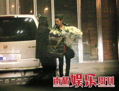 手捧黄玫瑰的李冰冰回的是北京东三环的新公寓。
