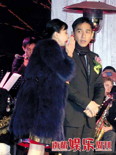 去年不丹大婚后,刘嘉玲和梁朝伟又各自投入了繁忙的工作,梁朝伟一直筹备中的王家卫影片《叶问》终于开机,而久未拍戏的刘嘉玲竟然今年一年中接拍了三部电影,社交活动有增无减,于是众人关注的生子事宜一再被推迟,难怪这一次到苏州被问及两人忙于工作,如何在生活中彼此照顾时,刘嘉玲只能无奈回答:“抽时间相处”。