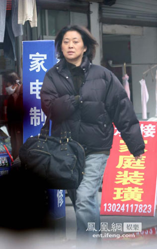 倪萍穿肥大衣裤街头买烟 披头散发"老人味"十足(2)