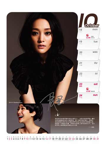 中新网12月18日电 随着华谊2010年台历的陆续曝光,多位新签神秘大牌也纷纷浮出水面,而之前一直被大家议论的周迅也终于魅惑现身,打破了流传的华谊年历无周迅的说法。