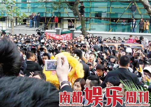 下午3:30,上海巨鹿路832号门外,有的人站上墙头,有的人爬上树梢,有的人用超长的镜头,有的人用竭力的尖叫,秩序几近崩溃。他站在二楼的窗口,对着窗外用手比出一个“C”字,“还记得我吗?我叫陈冠希”。