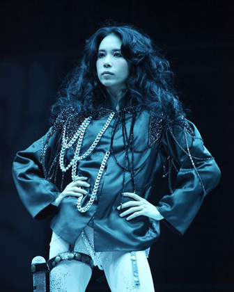 性感造型诱惑歌迷 透视装黑丝袜秀身材(图)