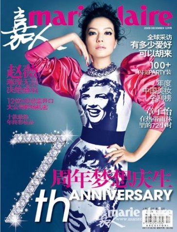 2009年赵薇一共登上3次封面,其中一次是《嘉人》七周年纪念刊。赵薇今年可谓收获颇丰,继去年参演的《画皮》和《赤壁》取得不俗票房之后,又参演了《花木兰》和《锦衣卫》,还于9月份推出了自己的数字专辑《我们都是大导演》。而其间传出的结婚新闻,也让她人气爆增。
