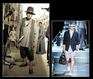 《十月围城》中角色众多,而每一个角色都有自己的专属造型。在网友们的眼中,这些破布褂子披在明星身上反而十分有型。发帖者先是称前有宋丹丹造型被山寨,后有《十月围城》整个剧组造型集体被山寨,然后便逐一贴出了对比照片,李宇春、黎明、梁家辉、甄子丹等人的造型都被爱马仕、山本耀司、登喜路、胡戈·波士等国际大牌吸取了“灵魂”,甚至连雷锋帽、中山装、大马褂这些中国风十足的衣物都可以在秀场上看到,而细心的网友更是指出了是哪个品牌的哪一场秀中山寨的是哪一个人造型。