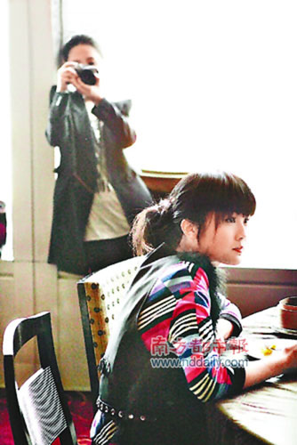 分开发展近两年的阿Sa和阿娇,近日为庆祝公司成立十周年,“合体”再现,以twins之姿接受《志云饭局》采访录影。等候录制时,阿Sa先叫点心填肚子,边吃边和工作人员聊天,阿娇则偷偷在旁拍摄她的吃相,阿Sa本人浑然不知,直到陈志云拿起D V加入拍摄大队,她才知晓吃相尽被别人拍摄下来。“摄影发烧友”阿娇不时到处拍照,颇显专业换多个角度取景。看到阿娇如此忙碌,经纪人霍汶希也凑个数,帮手当摄记为阿娇留影纪念。