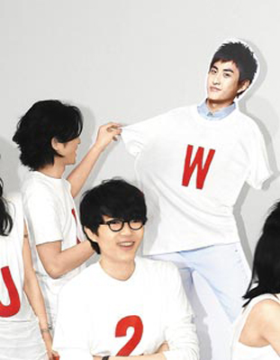 黄靖伦因来不及赶回台湾拍照,只好以人形立牌取代。