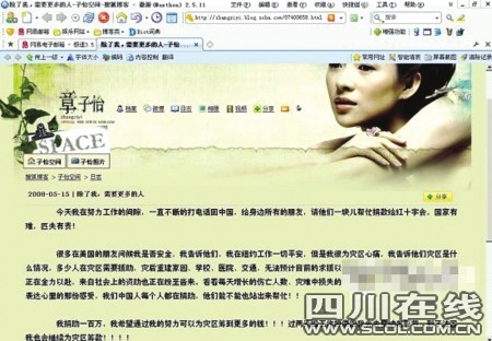 除募捐外,章子怡还在戛纳宣布成立章子怡基金。对此消息,网民们经过搜索,2008年6月26日,新华网转载《外滩画报》名为《章子怡:慈善家“章女郎”》的文章中提到,“章子怡以自己的名字命名基金,找来包括律师在内的专业人士帮她管理。除了章子怡自己捐出的100万元,加上她的好友、默多克夫人邓文迪捐出的10万美元,还有筹款会上一些外国明星的慷慨解囊,如今‘章子怡基金’已有了为数700万元的款项。”
