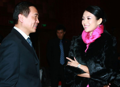 国家广电总局电影局副局长张宏森(左)与章子怡
