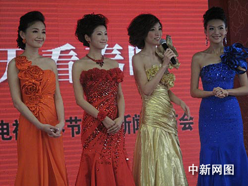 中新网2月3日电 昨天(2日),北京电视台春晚系列新闻发布会在北京举行,与春晚是老百姓的年夜饭概念不同,北京台在今年特别打造了“BTV春晚播出带”概念,即从腊月二十三小年夜到大年初六让观众天天都有春晚看。活动现场,作为大年初一重头戏的北京电视台春节联欢晚会四位当家女主播春妮,刘婧,乐文和栗坤携手曹涤非和罗旭两位主播型男,穿着特别设计的亮丽礼服一同登台惊艳亮相。