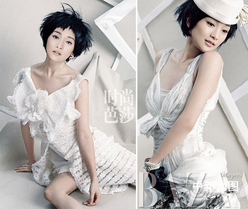 谁说只有长发才能演绎性感?周迅就用这款短发把“性感”这两个字完全的展现了出来。凌乱的发梢,不规则的刘海,再加上蓬松的质感,周迅摇身一边成了人们心中最乖巧的性感女神。这款短发搭配上帽子更加活泼可爱。