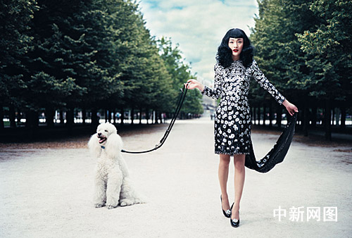 周迅为《Vogue》拍摄的这款时尚大片中,变身时尚精灵,穿梭于五光十色的梦幻世界中。这款齐刘海大波浪的个性发型,利用反差增强了视觉冲击力,不同元素的混搭与“梦幻”的主题配合的恰到好处。