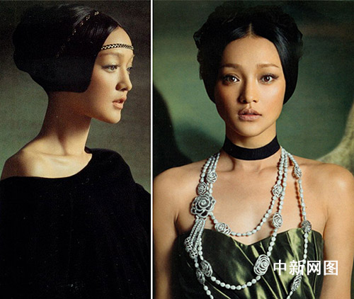 在09年8月号的《芭莎珠宝》上,周迅成了最美的奢华女神,欧洲宫廷式的发型加上复杂装饰品的陪衬,周迅将复古发型的成熟美发挥到了极致。