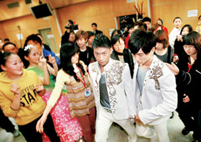 昨天,虎年春晚在央视一号演播大厅举行第四次彩排,小虎队首次亮相,演唱 《爱》、《蝴蝶飞呀》和《青苹果乐园》三首歌曲串烧。5分钟唱动全场,锋芒完全盖过了赵家班。