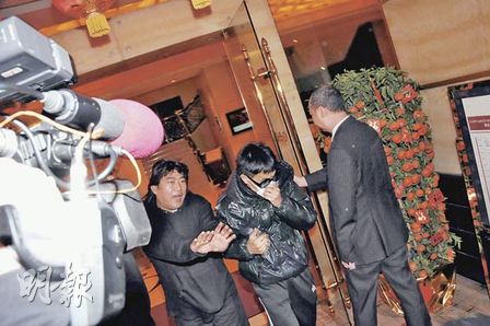 梁汉文昨晚离开解秽酒时,掩面回避镜头