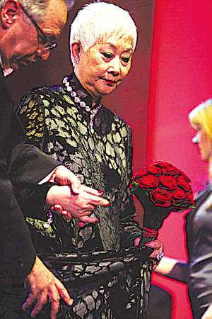 闭幕式红毯上,《团圆》女主角卢燕一身黑色拖地丝绒旗袍,搭配TESIRO通灵“巴洛克”系列的项链和手链,不规则的螺旋圆繁复、奇幻,串连在一起,将其优雅、大气,经过岁月历练的人生积淀完美呈现。颁奖仪式上,大奖得主纷纷登台,主席迪特·科斯里克站在台边大声邀请“Lisa Lu!”上台共享欢庆时刻,当卢燕走上舞台时,电影节主席迪特急忙上前搀扶,并弯身帮提裙裾,卢燕满头银发,自始至终仪态十分优雅。