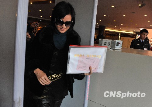 3月2日午后,全国政协委员宋祖英来到北京国际饭店通过安检门,向全国政协十一届三次会议会务组报到。中新社发 贾国荣 摄