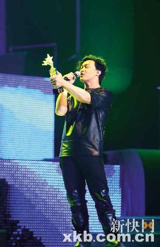 当晚陈奕迅和许志安两位香港乐坛大哥姗姗来迟,有意思的是,两人还在后台上演了一场“对垒”。