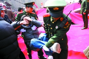 “庆典继续进行”中,锣鼓声再次萦绕耳畔,却与现场的一片狼藉形成了强烈的反差。此时当地群众也已无心观看,陆续散开。