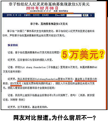 一位发动“万人签名追善款”的网友曾给笔者发来他们搜集到的各种资料,足足有12页。他说自己是单位的中层管理者,我问你为何要花这么多时间和精力调查这件事,他说:我无法忍受有人打着汶川地震的旗号去诈捐,更不能让严肃的慈善事业“娱乐化”,我只想知道真相。据他说,包括北美和澳大利亚的网友都在四处求证,有波士顿的网友甚至专门去了纽约调查章子怡基金。