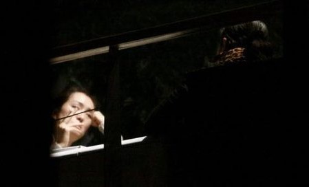 记者对这里的地形已经非常熟悉了,果然,在凭记忆围着餐厅转了一圈后,我们就在二楼发现了巩俐的身影,这位影后完全是素面朝天,看上去神态疲惫,吞云吐雾间表情苦恼,一手托腮似乎在强打精神。而坐在巩俐对面的是一男一女两位朋友——虽然中年男子看上去比较脸熟,但是认了半天依然没能确认身份。