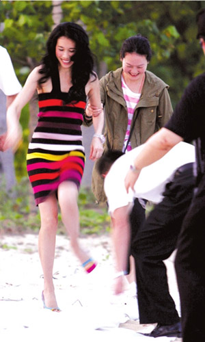 未见其人先闻笑声,步入采访间的莫文蔚高挑得让人吃惊,一条彩虹紧身裙勾勒出腰身,性感喷薄而出。她开门见山地说:“还不错吧?因为想突显出身材,我今天特意选了条贴身的裙子穿,这样会更女人味一点。平时生活中我很简单,但一涉及到工作,我就会很用心地去搭配服饰,就像做演员要尝试不一样的角色,给观众新鲜感一样。”