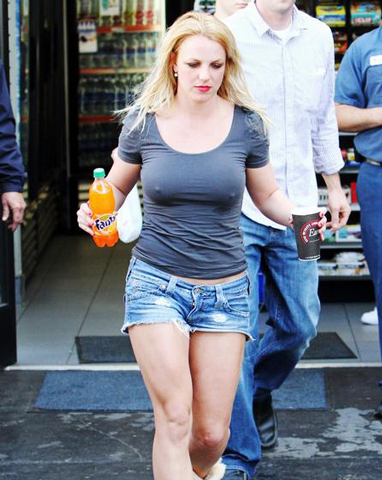 布兰妮不穿内衣大胆上街 露大象腿狂喝饮料(图) (2)