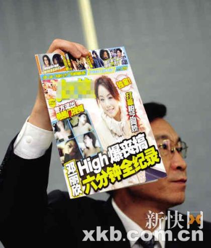 ●今年3月11日,某八卦杂志封面以“打赢柏芝阿娇”为题,旁边配以不雅视频截图,截取了12张疑似邓丽欣的不雅照。报道还指出,视频的来源是香港警方。