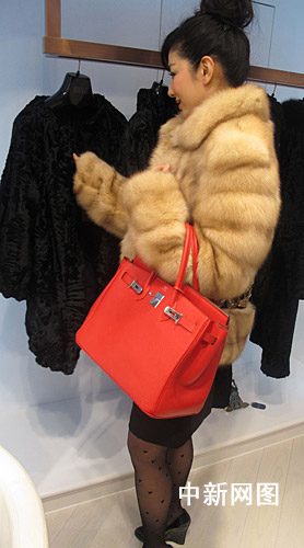 黄奕拎红色名包挑皮草
