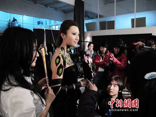 墨镜浓重彩妆亮相 露豹纹内衣继续雷人(图)