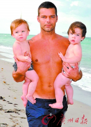 瑞奇·马汀是个合格的爸爸,经常和双胞胎儿子在一起。