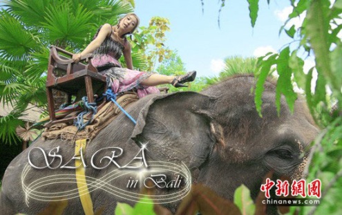 SARA变身丛林女王与象共舞 撩长裙晒修长美腿(图)(5)