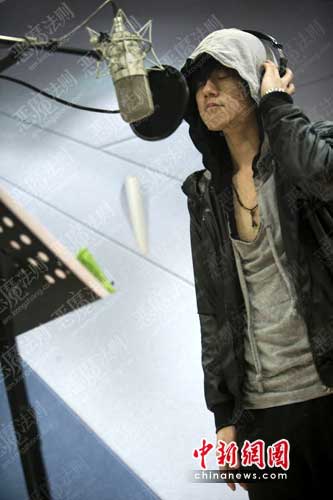 组图:张杰为《恶魔法则》录新歌 现场花絮曝光(2)