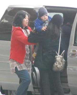 董洁抱儿子下车