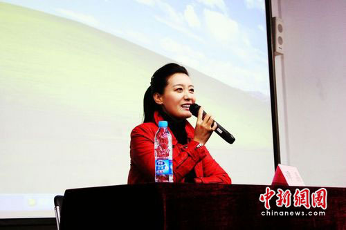 中新网4月13 政歌舞团著名歌唱家谭晶应邀作客清华大学,与学子们进行了长达两个小时的交流。当晚,谭晶讲述了自己的成长经历、公益之路,并鼓励广大学子勇攀人生高峰,多多回报社会。演讲过程中,掌声和笑语不断,现场气氛一度沸腾,更有观众主动请缨,上台与谭晶合唱了《龙文》、《我和我的祖国》及《绿叶对根的情谊》等歌曲。