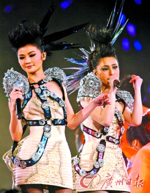 虽然已年近三十,但劲歌热舞依然是Twins演唱会的主要节目。前晚,除了叠罗汉、踩人梯等高难度动作外,Twins还大秀机械舞、灯管舞等新鲜舞步,而在演唱主题曲《人人弹起》时,更与舞蹈员一起在弹簧板上大玩“蹦床”。2001年,Twins初出道时主打的是青春可爱,第一次在澳门演出时的一记侧手翻,让两人一夜走红。前晚,这一经典场面又在红馆再现,当演唱《二人世界杯》到高潮时,Twins出人意料地一齐表演了侧手翻,立即引得全场粉丝尖叫连连。
