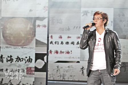 谭咏麟前晚出席青海筹款,全晚共筹得超过10亿港元,令谭咏麟最感动的,是节目压轴由他演唱《心手相连》及《像我这样的朋友》,向为救人捐躯的香港英雄黄福荣致敬,一向见惯大场面的谭咏麟,几乎被这个感动场面所牵引,险失手落泪而唱不下去,因他感到大家都很尊重黄福荣,对方无私奉献行为,令香港人骄傲。