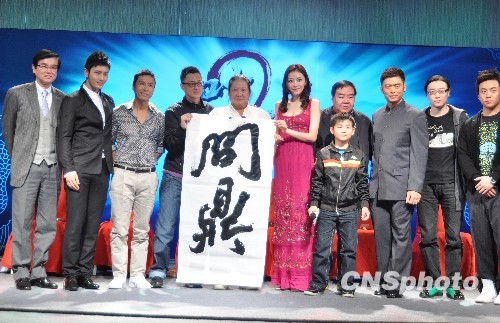 《叶问2》主创在发布会上合影。中新社发 李学仕 摄