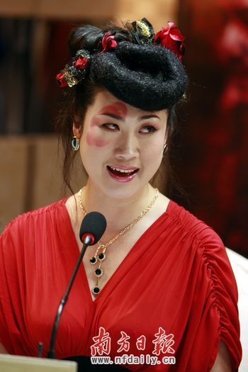 坐在台上的芙蓉姐姐颇为低调,低眉顺眼十分谦虚。当然,这个错觉只维持到她的开场白亮相:“大家好,我是冰清玉洁妖媚性感的芙蓉姐姐!”然后芙蓉继续语出惊人:“我觉得我很有影视方面的才能,希望能够尝试更多的戏和不同的角色,还希望能够进军奥斯卡!”她的话甚至让一旁的导演宁瀛被水呛得咳嗽起来。
