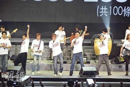 大汇演开始时,艺人齐集舞台,响起刘诗昆弹奏《黄河协奏曲》。刘德华、成龙、孙楠呼吁大家齐心为灾民筹款。大合唱《手连心》后,原本先由谢安琪打头阵献唱,但因音乐带出了问题,她被请回后台,改由李玟先出场,谢安琪之后再出场与李玟、关淑怡合唱,独唱部分被删。天后唱完后,轮到四位歌王张学友、孙楠、庾澄庆及李克勤献技。另外两位天王,刘德华与80后艺人唱出《承诺》,黎明 与香港童星“万宁妹妹”王允祈一起呼吁大家打捐款热线。