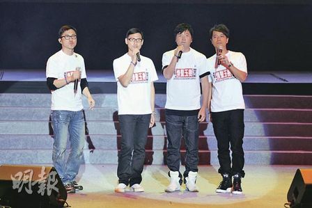 四大歌王庾澄庆(左起)、张学友、孙楠及李克勤合唱《龙的传人》。