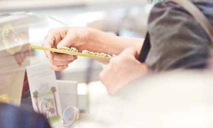 吃饭后的周海媚当即又生猛起来,还意犹未尽继续闲逛,当行至附近一间首饰店时,二话不说入内选购,她先后挑选了金链、金吊坠及耳环,见她对公仔形状的吊坠情有独钟,又不时拿上手细心研究,友人则在旁给予意见。逗留约20分钟,周海媚便扑锤买下一个数千元的金吊坠,及后继续在附近几间时装店卡衣服,但逛完一轮仍未选到心头好。