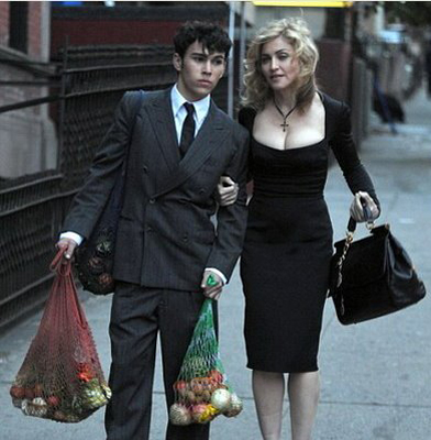 麦当娜街头装嫩大秀美胸 挽嫩模小男友似母子(图) (2)