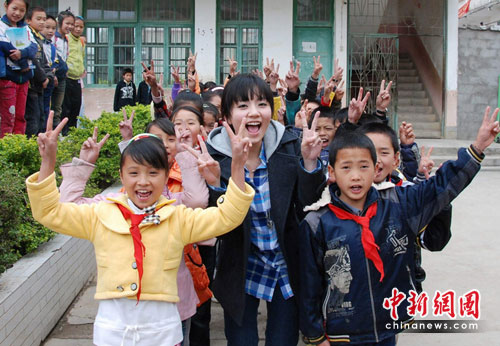 "快女"刘惜君赴广西旱区 捐水看望残疾儿童(组图)(2)