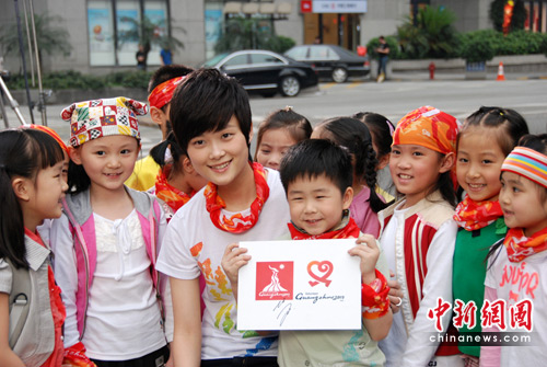 中新网4月30日电 近日,李宇春现身广州街头为亚运会拍摄亚运宣传片,和十几位小朋友一起为亚运加油。