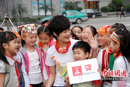 李宇春为亚运助威 街头做公益乐当"孩子王"(图)(2)