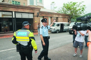 前日下午,警察到达驱赶停泊于霆锋寓所门外两旁的采访车