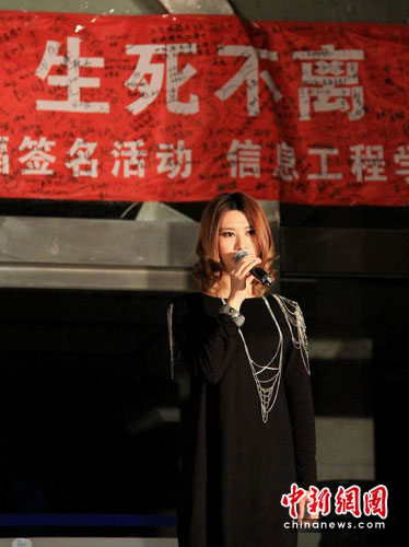 中新网5月12日电 昨日,尚雯婕携牛奶咖啡组合DISH乐队参加了由中国传媒大学信息工程学院发起5·12汶川地震两周年祭暨玉树地震祈福活动,大家心手传递“黄丝带”并留下祝福与祈愿。